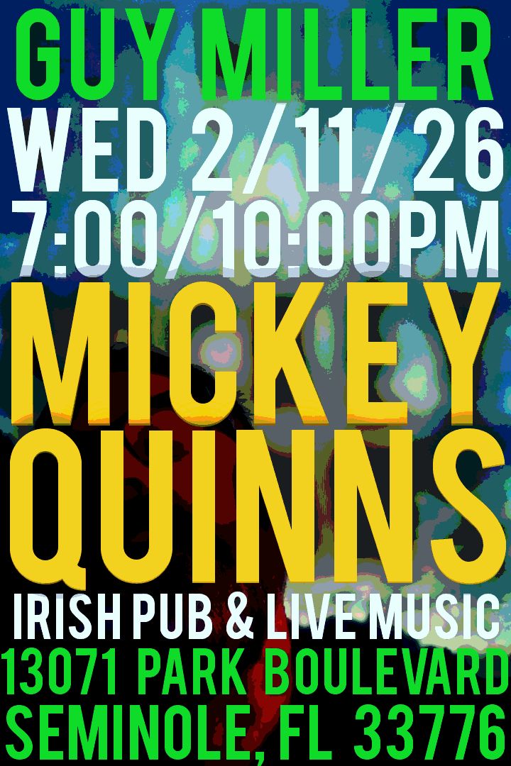 MIckey Quinns Live Music Hall and Irish Pub 13071 Park Blvd N., Seminole, FL, United StatesGuy Miller LIVE in the Music Hall at Quinns!